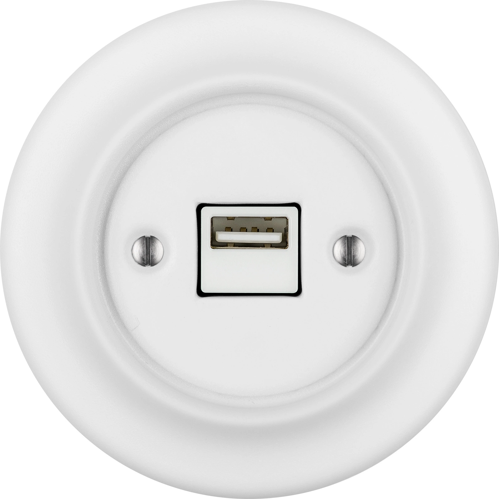 Porcelain USB charger. With glazed surface. Color - matt white. With highly durable surface and color stability. CE conformity certificate. Decorative cover. Guarantee 50 years!
