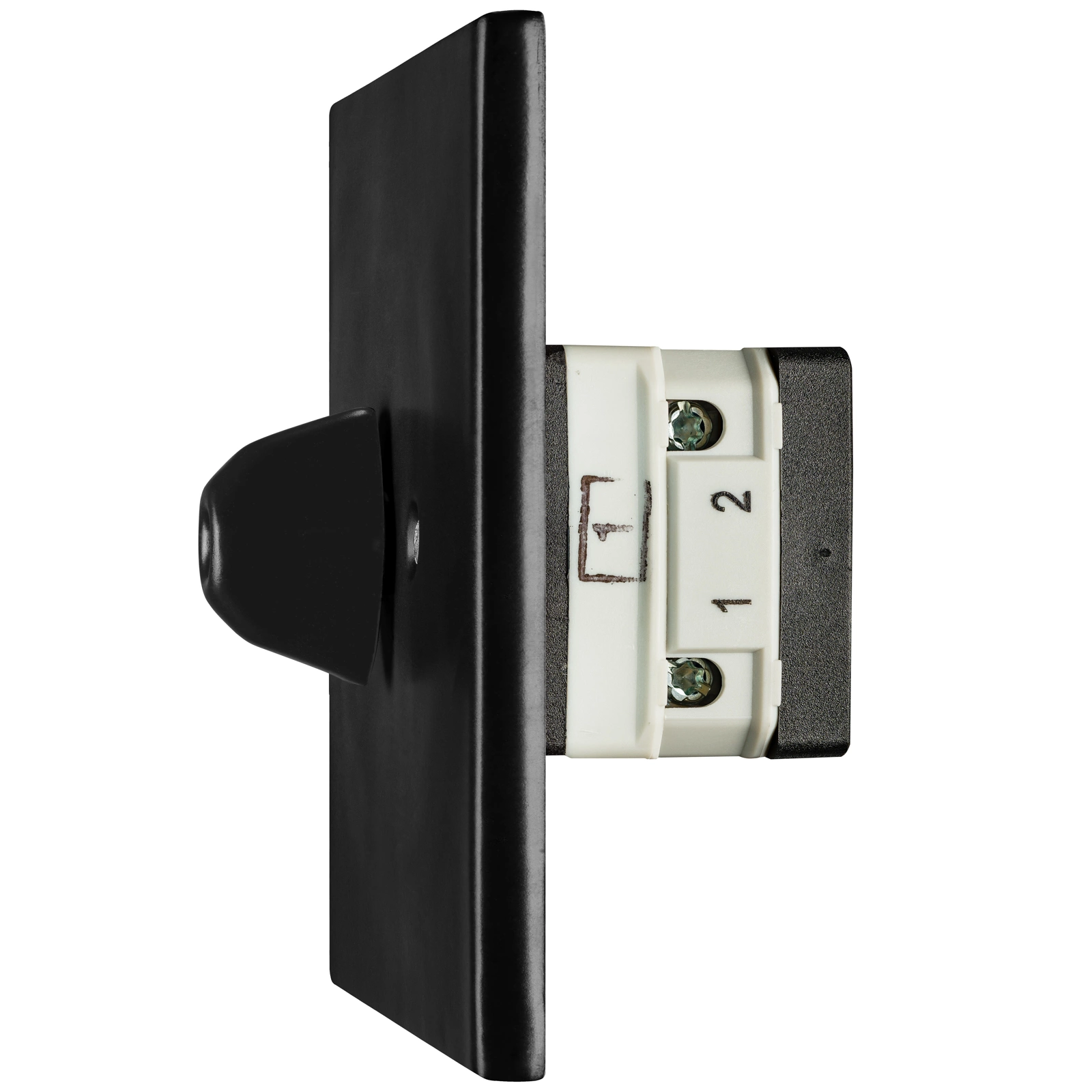 Re-designed retro rotary switch. This one in blackboard black shade. Made of traditional porcelain. Dust resistant. Constant colour and highly abrasion-resistant surface. Enamelled and handmade in top quality. CE conformity certificate. Decorative cover. Guarantee 50 years!